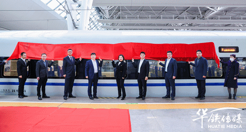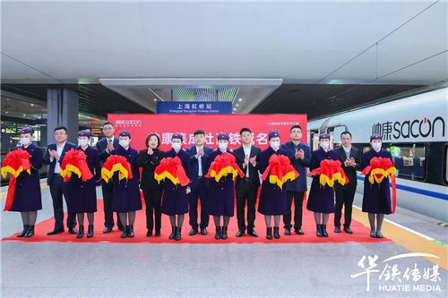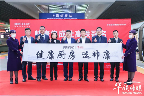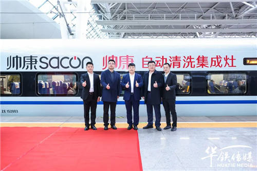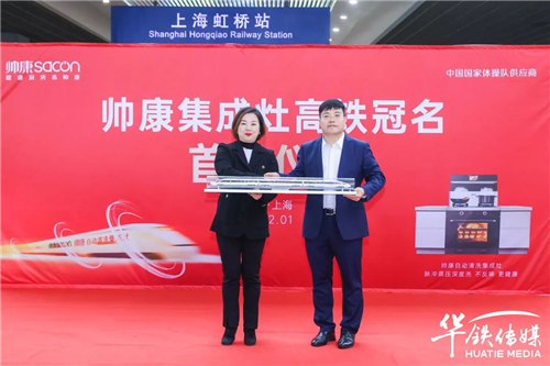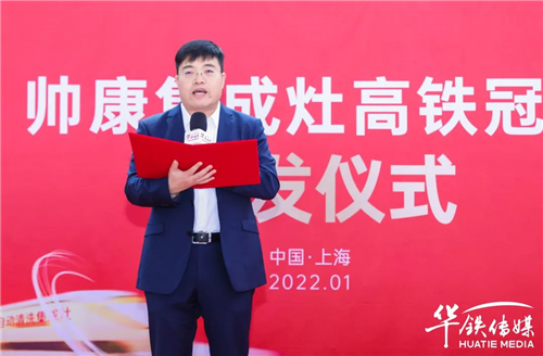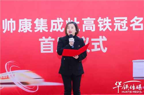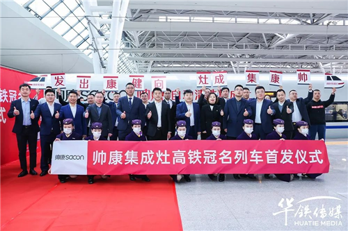 華鐵傳媒集團有限公司副總裁王靜,帥康電氣總裁孫命陽,帥康電氣副總裁楊兵,帥康營銷公司副總經理張建皋,帥康集成廚房副總經理逄勇等領導嘉賓出席,共同為專列剪彩揭幕,見證帥康冠名列車首發。