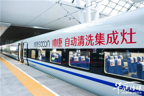 帥康集成灶高鐵列車內,視聽結合的多元化媒體形式,貫穿整個列車,反復、高頻次傳播帥康集成灶品牌信息,為品牌營造了長時間、深入接觸并感知的沉浸式體驗氛圍,也讓更多的消費者和家庭了解到帥康所創造的高品質、健康廚房生活,“帥康集成灶”高鐵列車風馳電掣,借高鐵速度之快,網絡覆蓋之廣,將更優質的產品、更貼心的服務廣泛傳播,將“健康廚房”傳遞到大江南北,竭誠為廣大消費者打造一個更健康、更舒適的家。