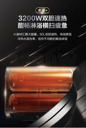 美的電熱水器TQ6小身材匯聚大能量,3200W雙膽獨立速熱,熱水分層降低冷熱水混合率,減少等待熱水的時間。它可以實現10倍增容水量設計,澎湃熱水持續供給不卡殼,洗澡更暢快。