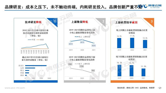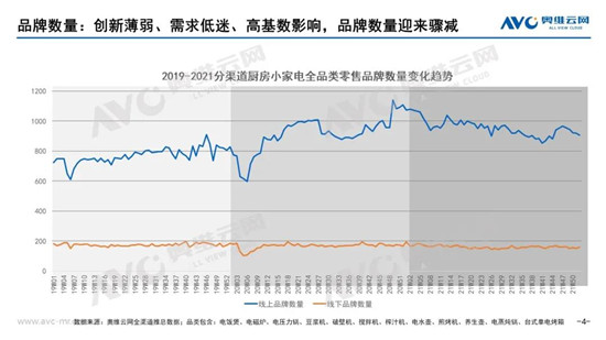 原材料價格上漲,及廚房小家電市場的需求低迷促使長尾品牌壓力持續增長,2021年以來市場品牌數量持續走下坡路。2020年新入場的新興品牌再度遭遇市場洗牌。