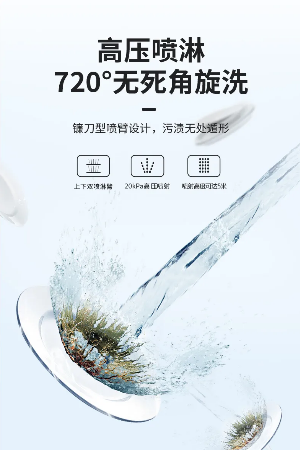 旋轉水流強力高壓沖刷餐具內外