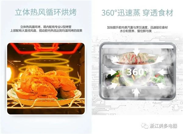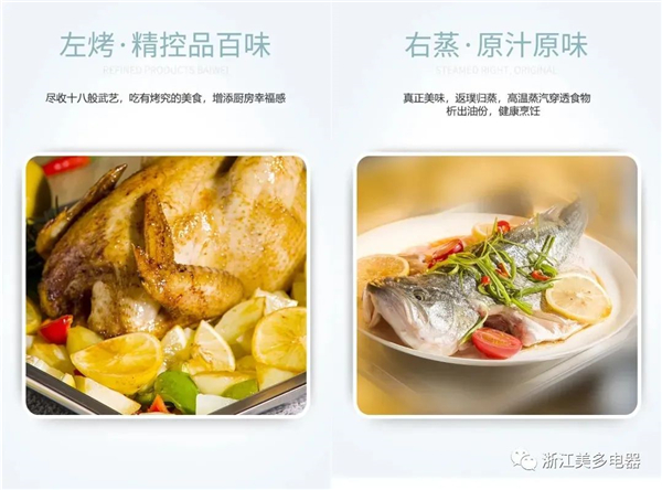 美多語音分蒸烤集成灶,集煎烤蒸炸等36種烹飪技法于一身,上烹炒下蒸烤。根據黃金分割比例打造出30L左烤箱+46L右蒸箱兩個獨立腔體結構,互不串味。半小時就能輕松搞定一桌菜,在家宴上皆能應對自如。除了容量巨大,美多集成灶還擁有專業級烹飪調控能力,360°高溫蒸鎖鮮又鎖營養,3D熱風循環烤出酥脆,美味速成增強你的烹飪幸福感。內置的100+智能菜譜,只需準備好食材即可開始烹飪,廚房小白也能變大廚。