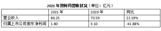同時,報告顯示,2021年1至12月份,澳柯瑪的營業收入構成為:制冷電器占比60.01%,小家電占比11.16%,其他占比10.14%,其他業務占比8.07%,空調占比5.96%。