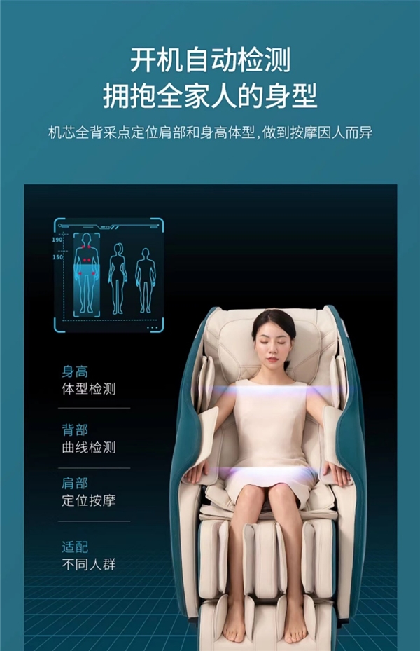 奧佳華OG-7508按摩椅擅長“理解”,它的開機自動檢測功能,讓它能夠全面讀懂她的所想所求。通過對全背進行分析采點,來定位肩部和身高體型,讓按摩因人而異,“理解”每一個不同體型年紀母親的酸痛與勞累。一共配置了6套按摩程序,能夠滿足她的日常按摩需求,并適配不同居家放松場景,無論是加班解疲、追劇娛樂,還是美容養生、睡前助夢,都能為她打造一個專屬的愜意角落,在這個角落,她不用做溫柔解意的母親,她只需要閉上眼去被“理解”、被安排,享受按摩的愉悅。
