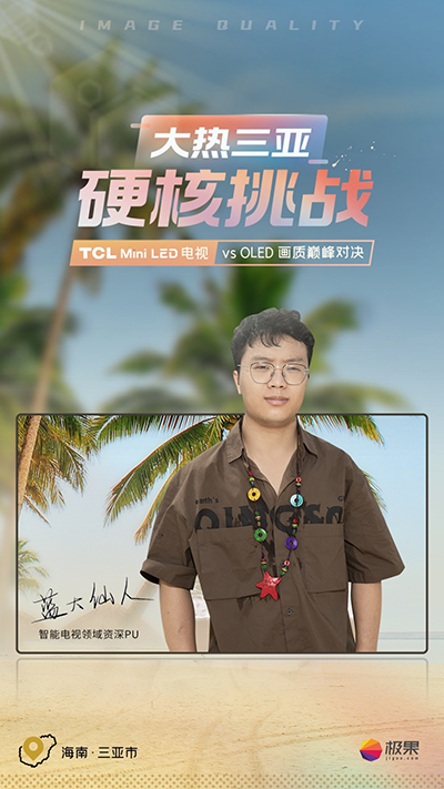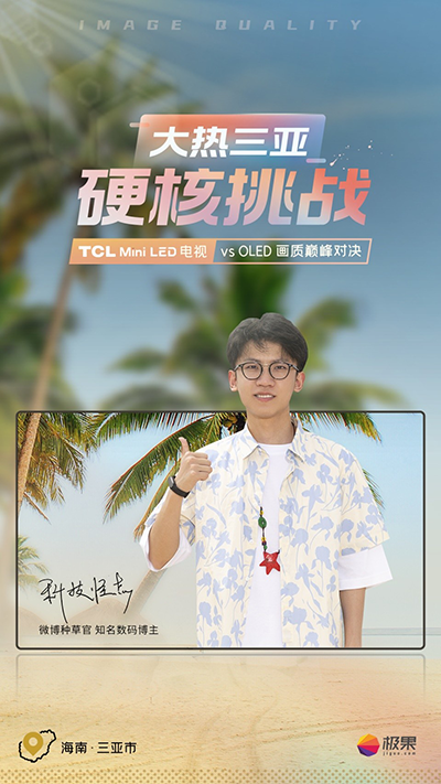 據網上公開的橫評視頻來看,這次的測評選擇了價位更高的OLED電視作為TCLMiniLED電視Q10G的對手。測評地點則選在了中國最靠近赤道的省市——三亞。之所以選在三亞,因為三亞地處熱帶,全年無冬,強光直射和烈日高溫更是5月常態,在此進行橫評測試,將會讓兩款電視產品直面烈日陽光和極限高溫的考驗。
