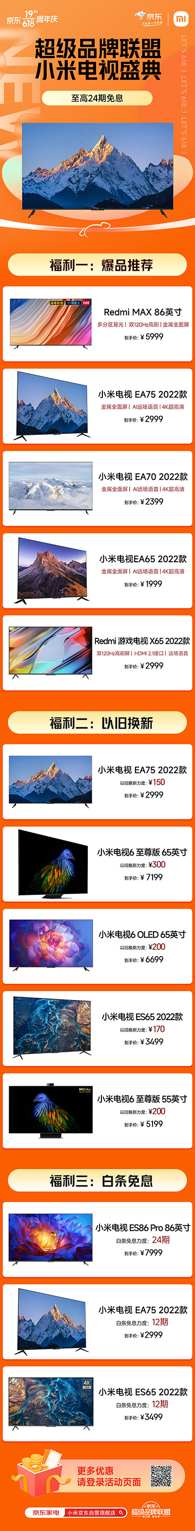 “感動人心,價格厚道”,是小米始終如一的堅持,小米將為用戶持續帶來質優價好的高新技術產品。本次“超級品牌聯盟小米電視盛典”京東618大促活動將持續至6月3日,除上市介紹的幾款優質爆品外,還有更多小米電視機型參與到了本次大促中,用戶可根據自身需求選擇更心儀的機型,可點擊文末鏈接查看活動詳情。