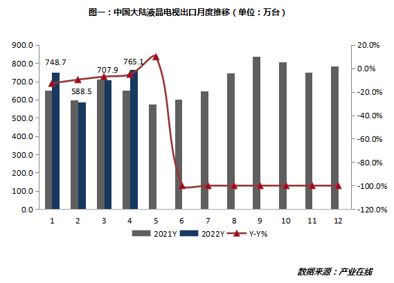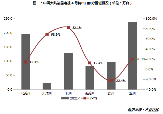 產業在線數據顯示:2022年4月彩電產量1019萬臺,同比增長9.7%,銷量1010萬臺,同比增長9.5%;其中出口765萬臺,同比去年增長17.3%;內銷245萬臺,同比去年下滑9.4%。綜合1-4月份來看,內銷出貨1133萬臺,同比下滑7.5%;出口2795萬臺,同比增長7.0%。去年4月份出口市場正面臨運費上漲、面板價格上漲種種不利因素造成出口量降到四年內最低,因此今年出口市場受到基數的影響增長態勢比較明顯,但是對于20年與19年,該出口量為正常出口;內銷市場依然增長比較乏力。