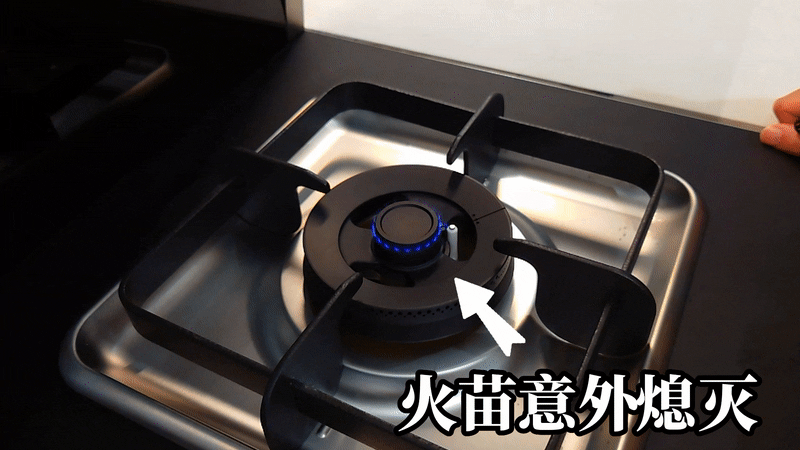 我們模擬了小火在使用時意外熄滅的情況,點燃打火機靠近火蓋,反復試驗,灶具都沒有火苗出現,可以看出佳歌A5的熄火安全保護到位。