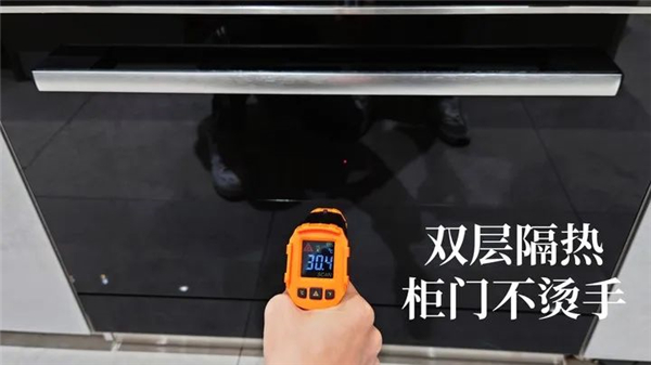由于采用了雙層玻璃,消毒時柜門溫度僅為30.4℃,用手觸摸門板也只感到微微發熱,不會燙手。