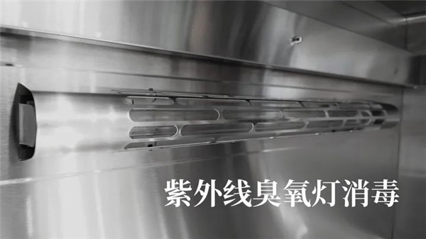 超長紫外線燈,內置新風系統 紫外線是佳歌A5其中一種消毒方式,超長的紫外線燈鑲嵌在背板上,底部還搭載了熱管進行加熱烘干,配合新風排氣系統,消毒完成后無需擔心異味殘留。