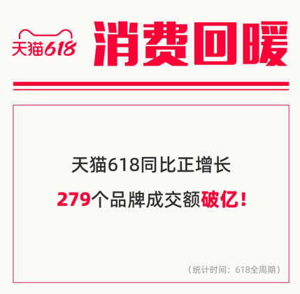 從天貓618持續穩定正增長可以看出,消費需求逐步釋放,消費活力進一步激發,商家經營回暖,市場主體運行漸穩。
