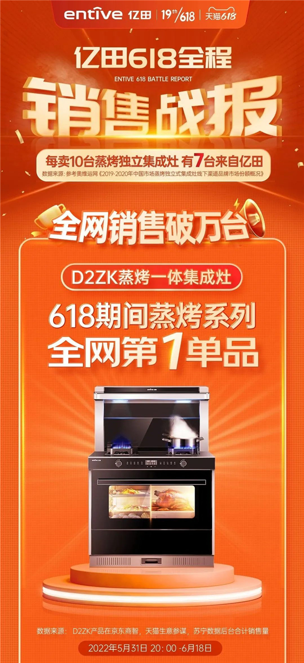 本次618,億田除延續斬獲全網第一單品之外,億田S8A蒸烤獨立集成灶、D2ZK蒸烤一體集成灶強勢霸榜占據平臺榜單前十中的四席!為何億田能夠持續受到用戶信賴頭部產品又有哪些值得長期購買呢?一起來看看吧!