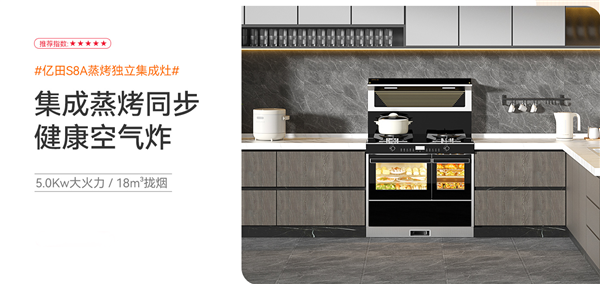 億田S8A蒸烤獨立集成灶,采用行業先驅引領的獨立蒸烤集成科技。48L蒸箱+26L烤箱獨立腔體,煙灶+蒸烤多合為一,左蒸右烤,互不干擾。蒸烤同步,雙管齊下,最快15分鐘就能完成一桌菜肴。