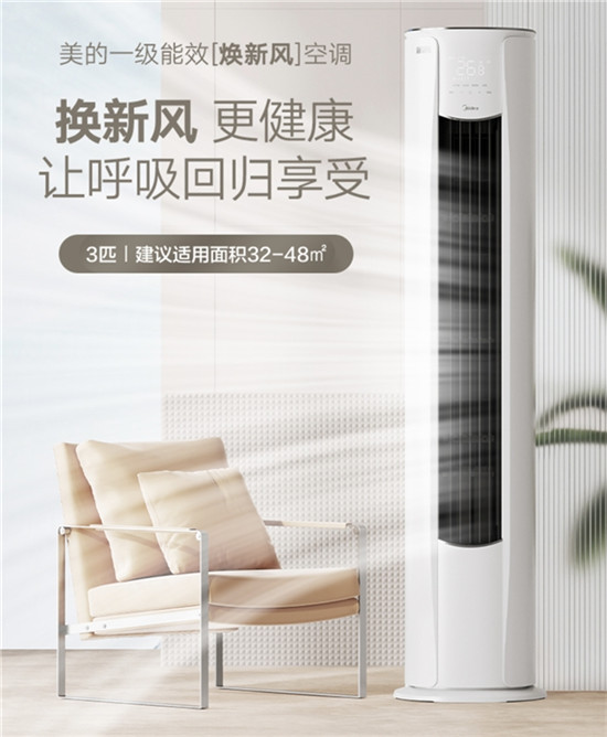如果你想要在客廳也能擁有一臺新風空調,平時健身、會客或全家人在一起也能用,那么美的煥新風客廳圓柱立式柜機不可錯過。美的煥新風客廳圓柱立式柜機具有210m3/h超大新風量,26分鐘即可將全屋空氣換新。背面止逆閥設計,不用新風時自動關閉,防止室外空氣倒灌,避免擾亂室內溫度及臟空氣進入室內,更有獨立四檔新風系統滿足多樣化需求。同時,H13濾網對PM2.5單次過濾效率達99.95%,構建潔凈空氣保護盾,營造健康良性的室內外空氣換新體驗。