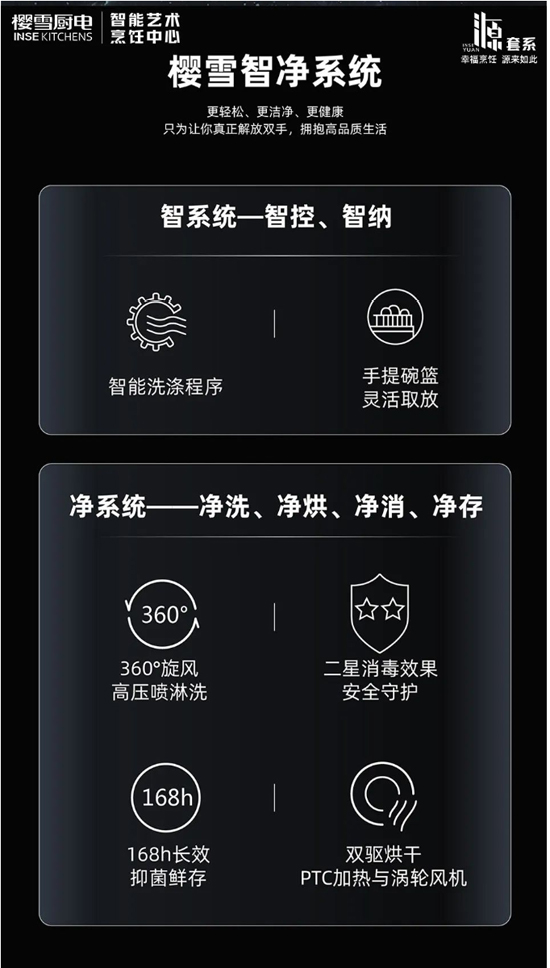基于對用戶需求的洞察,櫻雪洗碗機2302搭載櫻雪智凈系統,集洗、消、烘、存于一體,一機解決“不想刷碗、誰來刷碗”的世紀難題!