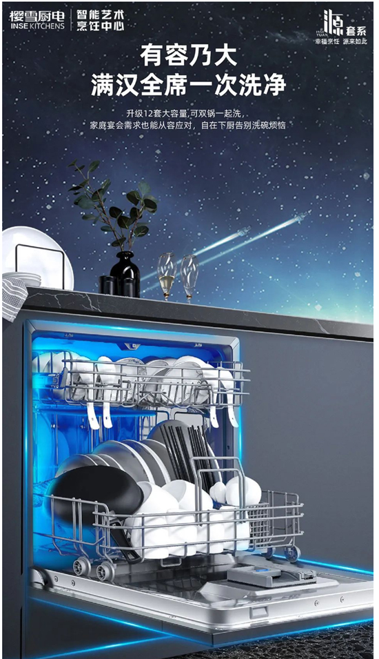 升級12套大容量,可雙鍋一起洗,鍋碗瓢盤來者不拒,從此盡情享受酒足飯飽的滿足感,無需面對廚房里一堆待洗的餐具。