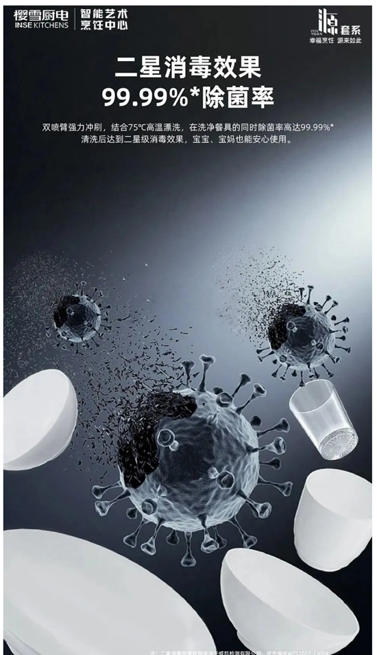 洗的本職工作上做到盡善盡美后,櫻雪洗碗機在“消、烘、存”上也下足了功夫,真正實現“解放雙手。餐后洗滌的碗盤雖看上去干凈,但肉眼看不到還有細菌殘留。櫻雪洗碗機2302除菌率高達99.9%,媲美二星消毒效果,輕松替代消毒柜,為家人健康保駕護航。