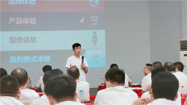 市場部部長就1-7月份終端形象提質升級情況進行了總結。他就門店設計流程內容和形象升級過程中的注意事項進行了詳細剖析,接下來還將加強設計和廣告畫面輸出內容,同時為更好地開展門店設計和品牌宣傳工作,他也對全體營銷人員數據和門店實際情況信息上傳工作提出了要求標準。