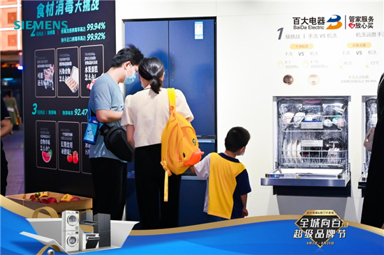 帶著對消費需求的洞察,此次“全城向百”超級品牌節活動,西門子家電以滿滿的“黑科技”禮獻消費者。啟動儀式上不僅有西門子智能eNose冰箱、西門子晶蕾洗碗機、西門子5D環吸油煙機、西門子歐韻系列超氧洗烘套裝等旗艦家電產品集體亮相,更在現場還原了真實生活場景,讓消費者盡情體驗智慧科技帶來的健康品質生活,為消費者帶來鉅惠升級的產品與服務。