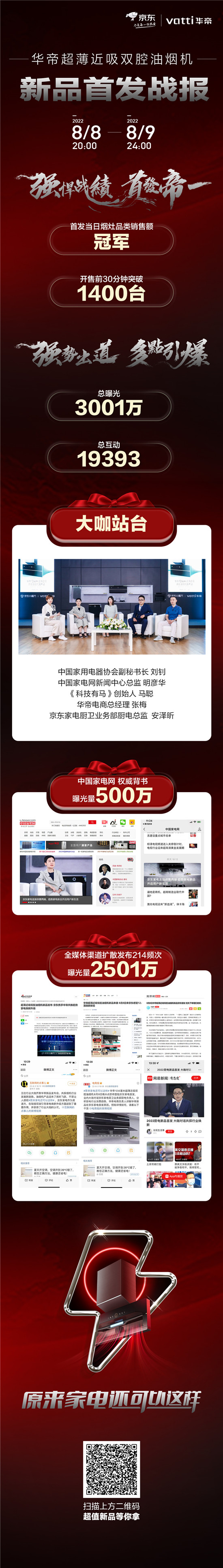 2022年已過大半,從年初至今,已有包括但不限于華帝等數十個品牌廠商在京東家電進行新品首發,實現新品銷售引爆,讓用戶第一時間體驗到了新品家電。相信隨著更多家電新品的出現,消費者將解鎖更多生活新體驗,京東家電也將憑借自身優勢推動趨勢家電進一步發展,推動行業結構升級。