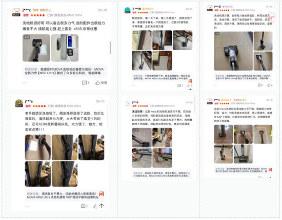 搭載革命性M05直驅電機的MOVA M50 Ultra洗地機,自預售以來市場表現強勁,持續占據天貓、京東等主流電商平臺高端洗地機品類銷量領先位置。用戶反饋高度集中于其核心優勢: