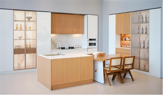森歌不銹鋼定制家居專注于以意式極簡元素為設計理念,打造社交型創意廚房生活。精準捕捉消費者在廚房空間利用、清潔便捷性及功能集成化等方面的核心痛點,推出集顏值與功能、科技與藝術于一體的兩大新品系列——“日式·北島日記”與“中廚·意境”,為廚房空間帶來了全新的美學體驗與實用價值。
