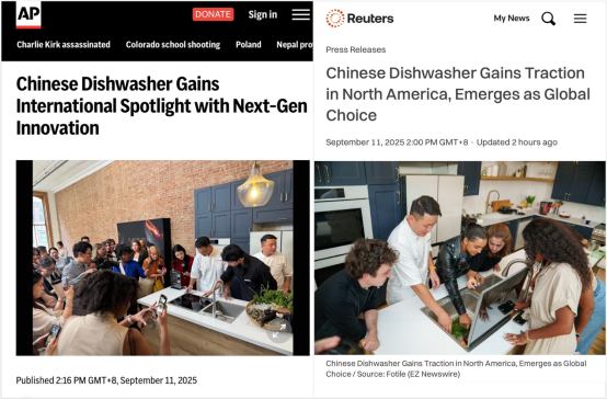 在本次由中國創新掀起的全球熱議中,方太新一代洗碗機也登上中國日報國際版整版《Chinese dishwasher wins global acclaim》,China Daily對這一現象也給予高度評價;新華網海外主持人同步聚焦,通過實地走訪與美國消費者對話,捕捉到海外用戶對方太新一代洗碗機“實用、人性化設計”的真實反饋,反映出“中國創新正贏得海外家庭的青睞!鄙虾H請蟆锻饷娇词澜纭穭t進一步指出:全球創新格局正在發生結構性轉變——中國不僅在消費電子、新能源汽車等領域引領風潮,更在曾由西方品牌主導的廚電領域實現突破。方太新一代洗碗機憑借顛覆性技術與系統性創新,成為“中國智造”崛起于世界舞臺的又一典型代表。
