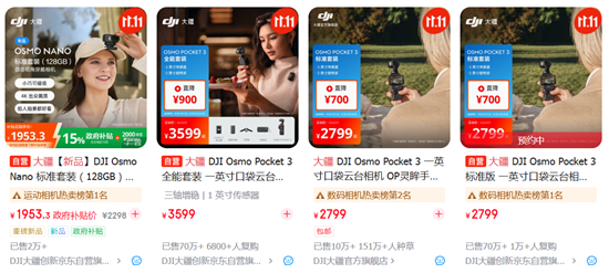 在大疆京東自營旗艦店,大疆旗下多款產品實施價格下調策略,涵蓋品類包括戶外電源、云臺相機、運動相機、手機穩定器、無線麥克風、無人機及掃地機器人等。