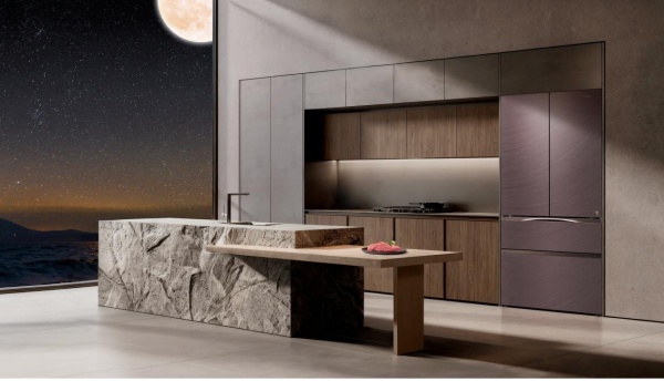 在空間規劃上,新品直面現代多代同堂家庭的儲鮮剛需,以650L墅級大容量和僅908毫米的箱體寬度,實現了62%的行業頂配容積率,成為行業容積率最高的法式四門雙系統冰箱,亦是同寬度內容量最大的平嵌冰箱。其純平全嵌設計與60cm超薄機身,能嚴絲合縫嵌入櫥柜。搭載的177專利變軌鉸鏈,使冰箱門即使緊貼墻壁也能實現116度超大角度開合,取物便捷。全新升級的云感推彈果蔬抽屜任意位置輕推即開,一體化設計的內飾構件與頂部全寬面光源,搭配晶彩智慧屏,讓用戶對食材狀態一目了然。