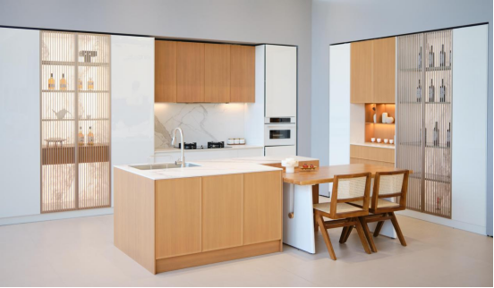 博洛尼櫥柜主營整體廚房、全屋定制及衛浴、內門等家居產品。整體以現代簡約風格為主,注重空間線條設計與自然材質運用,強調功能性與美學平衡。