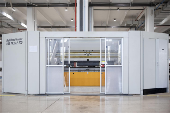 跑車級德國RAS智能柔性折彎中心,精確度高可達0.01mm;航天級德國TRUPUNCH數控沖床實現0.005mm精度加工;蘭仕丹折彎機能一次成型2.8米無刀痕圓弧門板;5G+AGV全鏈路數字化管理讓生產效率提升30倍。
