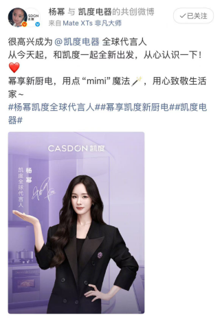 最終,凱度電器牽手了兼具影響力與實力的楊冪。